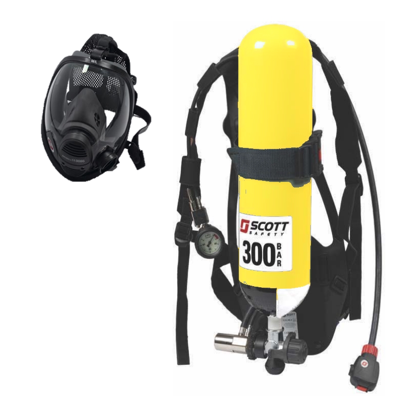 - kompozitná tlaková fľaša 6,8 l / 300 bar so zásobou vzduchu na cca 45 min.