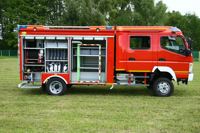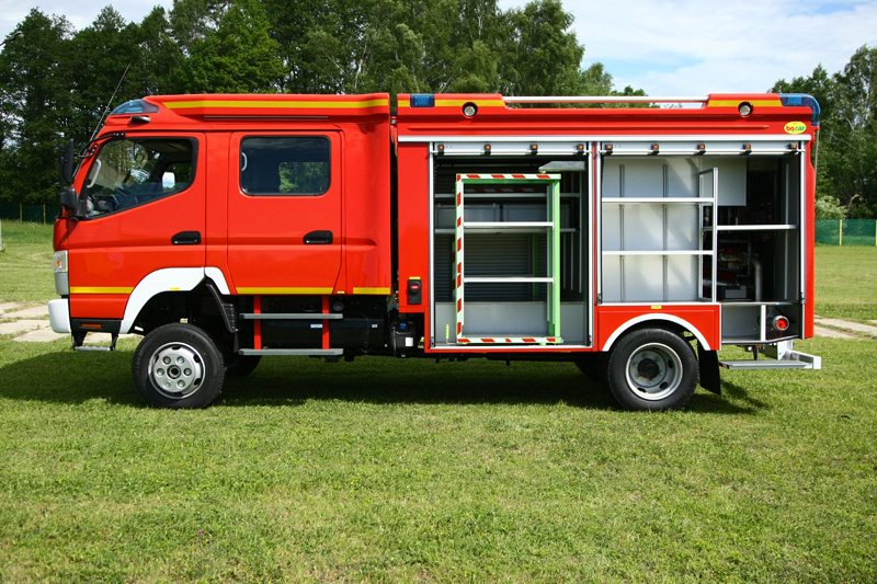 Ľahký zásahový hasičský automobil na podvozku Mitsubishi Fuso Canter 4x4 s uzávierkou diferenciálu hnacej nápravy GVM.