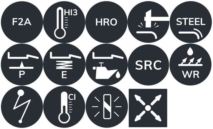 F2A: obuv pre hasičov typu 2, má antistatické vlastnosti, konštrukčný typ C, oceľová špička, chráni proti nárazu o energii až 200 J alebo 15 kN deformačnej sily, oceľová stielka odolná proti prepichnutiu do 1100 N, HI3 - tretia úroveň tepelnej odolnosti.
