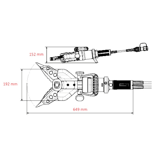 Je vybavený prepracovanými čepeľami s mriežkovou štruktúrou a zárezom na strihanie okrúhlych tyčí. Nástroj je kompatibilný s reťazovým setom a mechanickým záchranným valcom. Vďaka 360° otočnej a sklopnej rukoväti je ideálny pre prácu v stiesnených priestoroch.