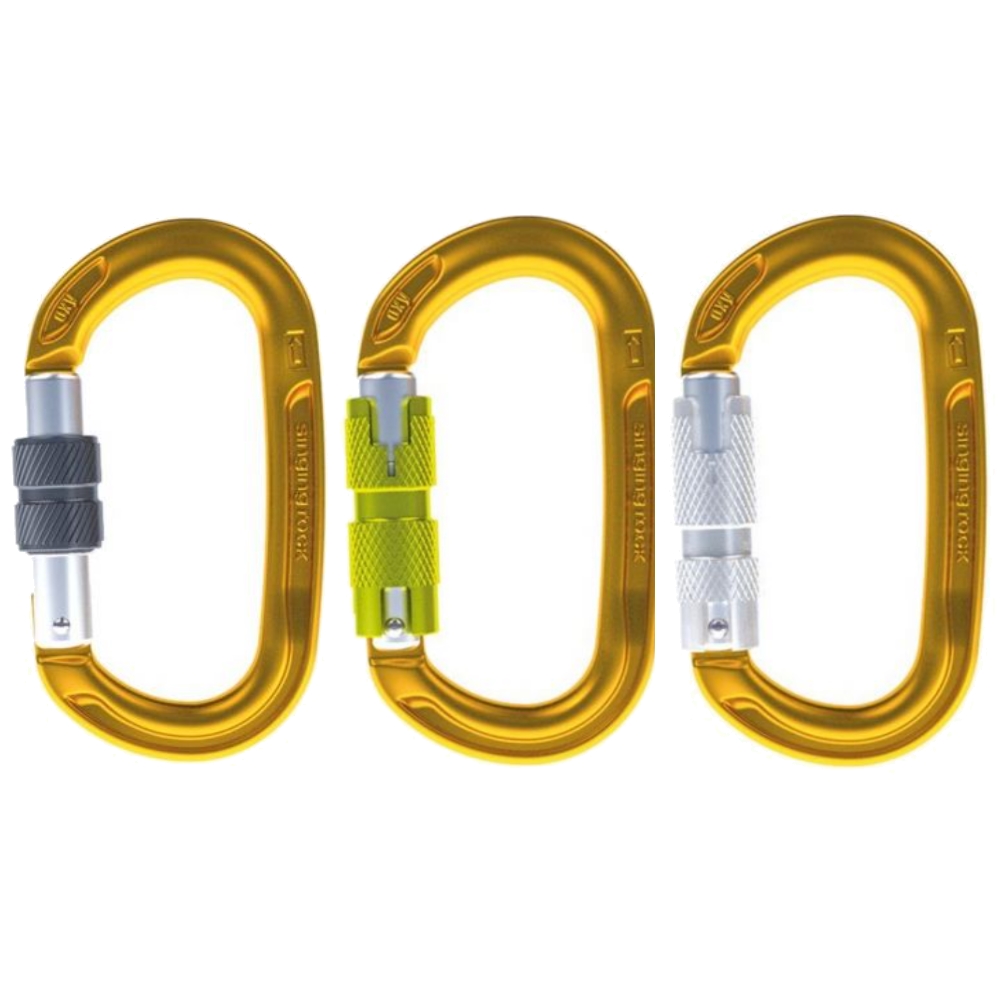 SINGING ROCK OXY je oválna karabína pre použitie s kladkami, blokantami, zlaňovacími a istiacimi prostriedkami so skrutkovacou, twist alebo triple poistkou.