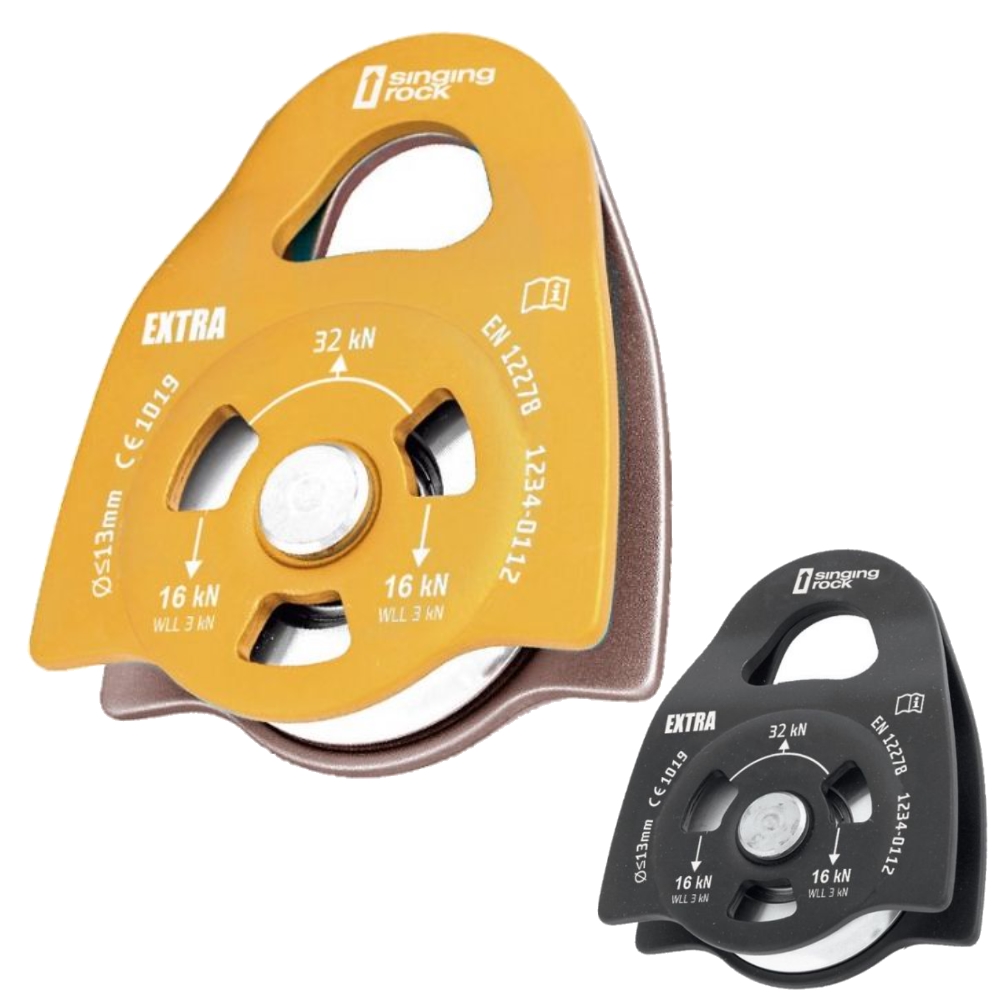 SINGING ROCK EXTRA je veľká kladka určená na časté používanie v náročných podmienkach. Využijete ju pri práci vo výškach, lanovom prístupe, arboristike a záchrane. Je vhodná na zdvíhanie a spúšťanie bremien, budovanie kladkostrojov, vytváranie záchranných systémov.