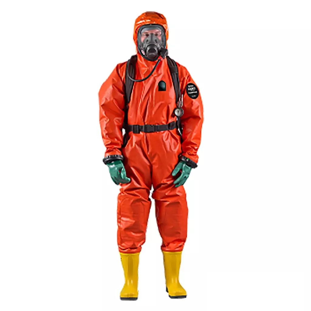 Kvalitný jasneoranžový plynotesný oblek určený do priemyslu. Oblek má dobrú odolnosť voči kyselinám a žieravinám.