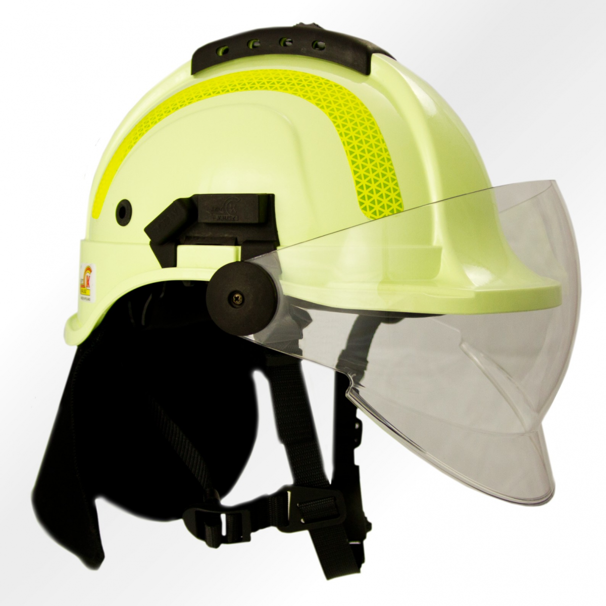 Plná ochrana pri nízkych a vysokých teplotách (-20°C až + 50°C), pokiaľ ide o šokovú absorpčnú kapacitu, odolnosť proti prepichnutiu pomocou oceľovej guľôčky s rýchlosťou 120 m/s, odolnosť voči kompresných síl, odolnosť voči kvapalných chemikálií a iné aspekty v súlade s vyššie uvedenými normami. Všetky vonkajšie prvky prilby, vrátane popruhov na brade, sú ohňovzdorné. Reflexné prvky pre zaistenie vysokej viditeľnosti záchranára.