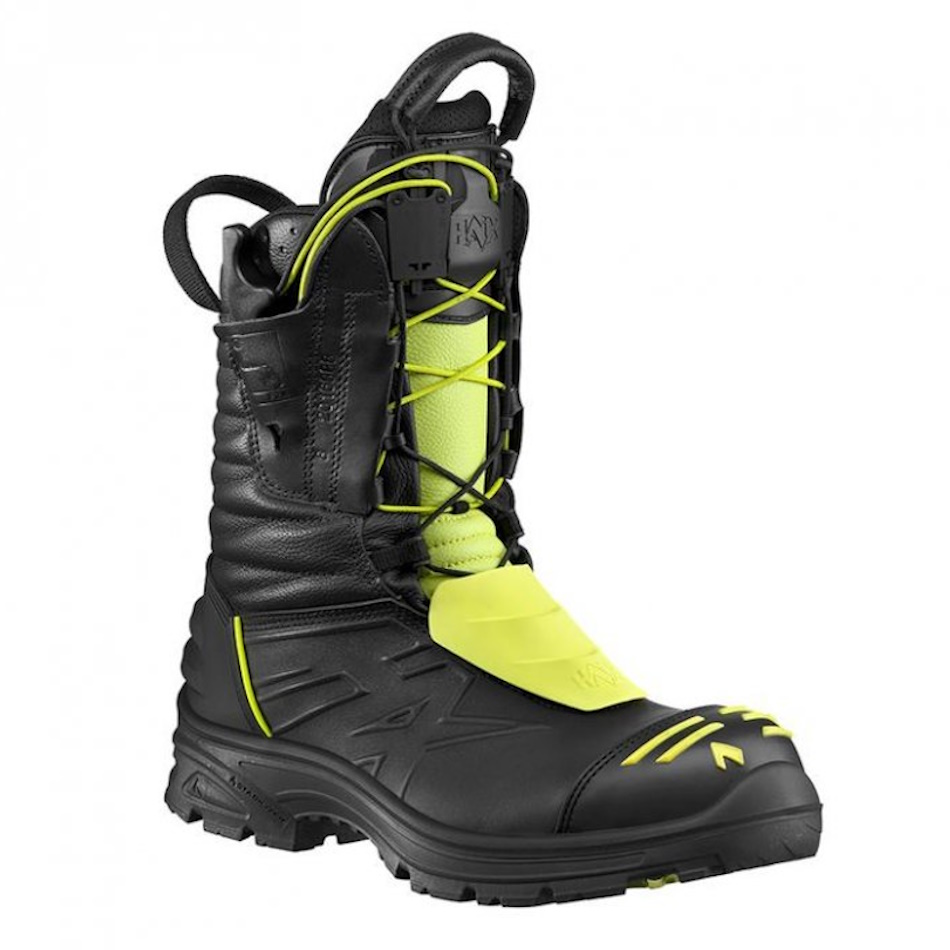 Zvýrazňujúce prvky sú vyvedené v žltej farbe - cieľom bolo zvýšiť viditeľnosť topánky v dyme a to aj v prípade, že hasič lezie po štyroch - preto je žltá farba aj na podrážke.
