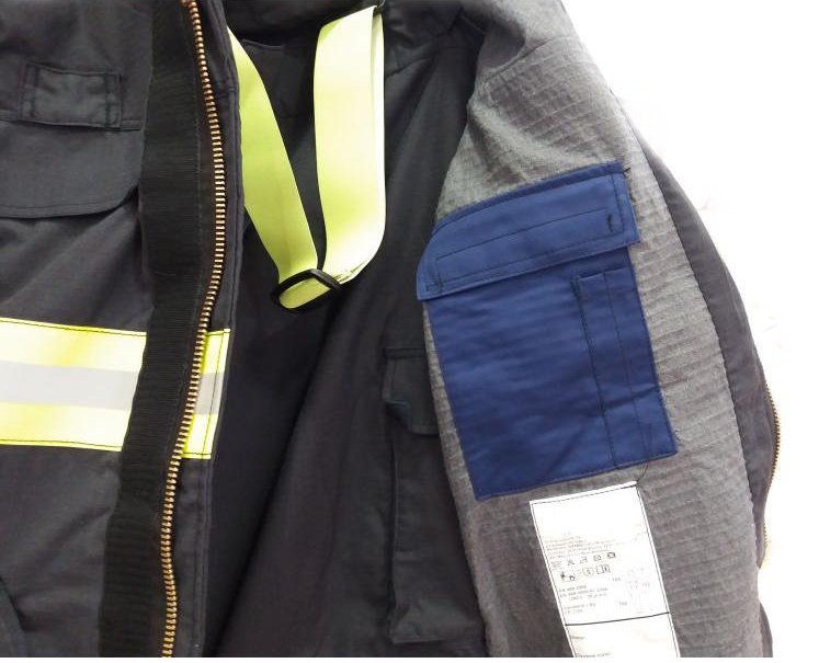 - podšívka: 32% meta aramid (nomex); 34,5% para aramid (kevlar); 33,5% viskóza FR.