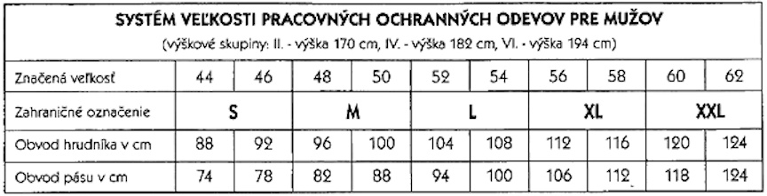 - vrchný materiál: 75% meta aramid (nomex), 23% para aramid (kevlar), 2% antistatické vlákno,